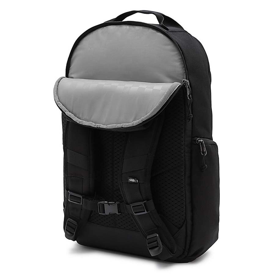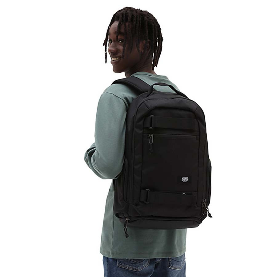 Az ergonomikusan párnázott vállpántok és az állítható szegycsontpánt hosszabb távon is kényelmes viseletet biztosítanak. A külső cipzáras kulacs- vagy palacktartó zseb hálós hosszabbítással nagyobb tárgyak szállítására is alkalmas. A Vans DX Skatepack megbízható társ városi használathoz, iskolába, munkába vagy deszkázáshoz.